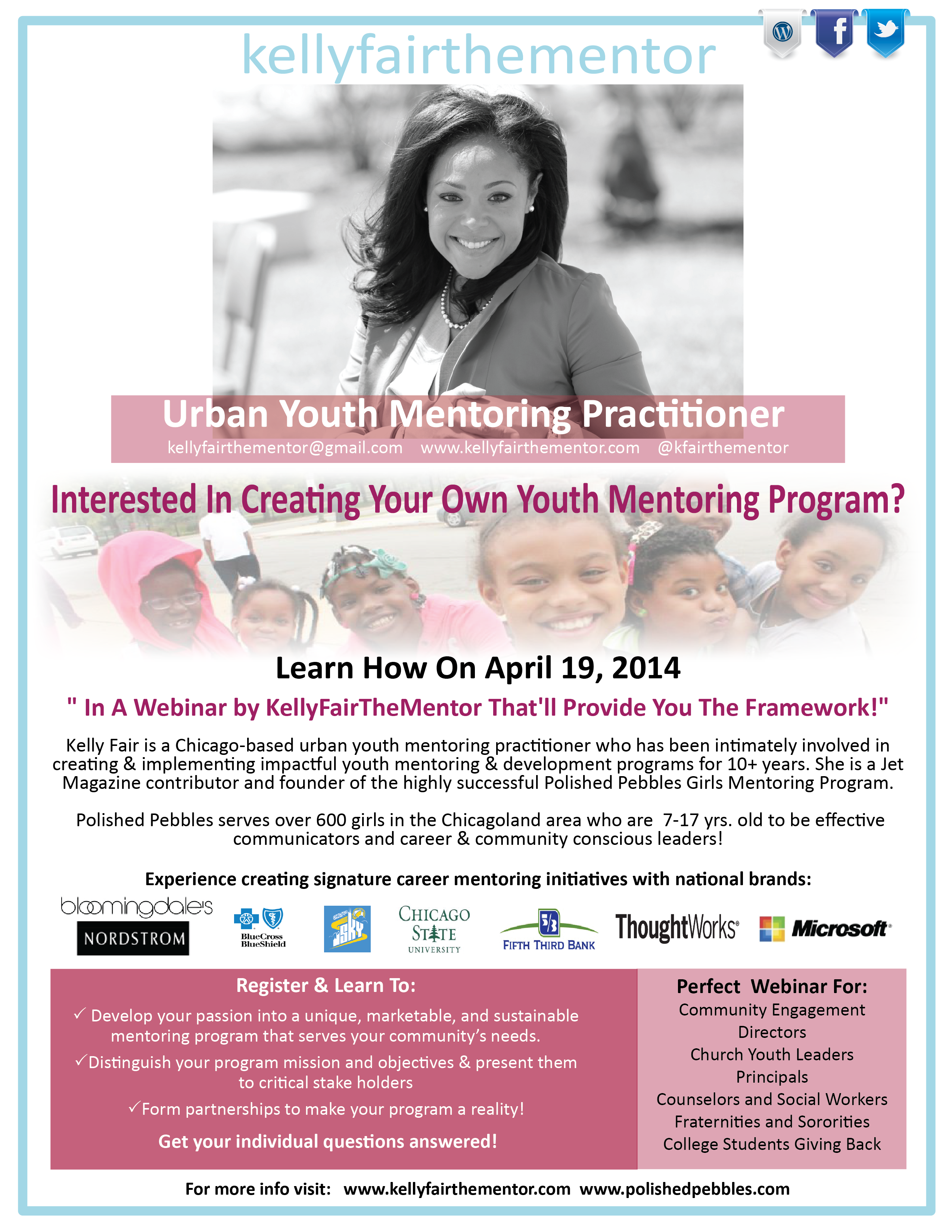 Interested In Creating Your Own Youth Mentoring Program? Learn How With Her Live Webinar April 19, 2014 Experience Creating Signature Career Mentoring Initiatives With National Brands! Register & Learn To: