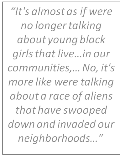 After over 10 years experience in education and youth development, and over 4 years running Polished Pebbles Girls Mentoring Program, I’ve gotten to know lots of wonderful young ladies and their families. When I’m out and about and I tell people about my career mentoring girls here in Chicago, I frequently get many “pats on the back” and receive sentiments of genuine sincere support and appreciation for my work. But, that expressed appreciation is many times also decorated with tones of disdain and disapproval about the current state of black girls. People are so quick to say to me things like “Good, THOSE girls need it”,or “THOSE girls are lost.” And, I often think to myself, when did the girls living in our communities stop being OUR girls and become THOSE girls? It’s almost as if were no longer talking about young black girls that live and are educated in our communities, and our cities, and essentially products of us as a people. No, it’s more like were talking about a race of aliens that have swooped down and invaded our neighborhoods with disrespectful and unmotivated approaches to their own lives and lives of others. And, we don’t know how these alien black girls got here, and why they act the way they do.